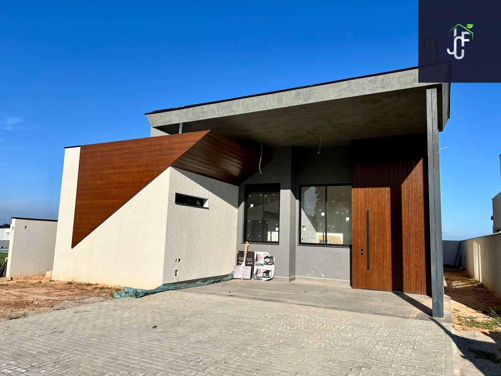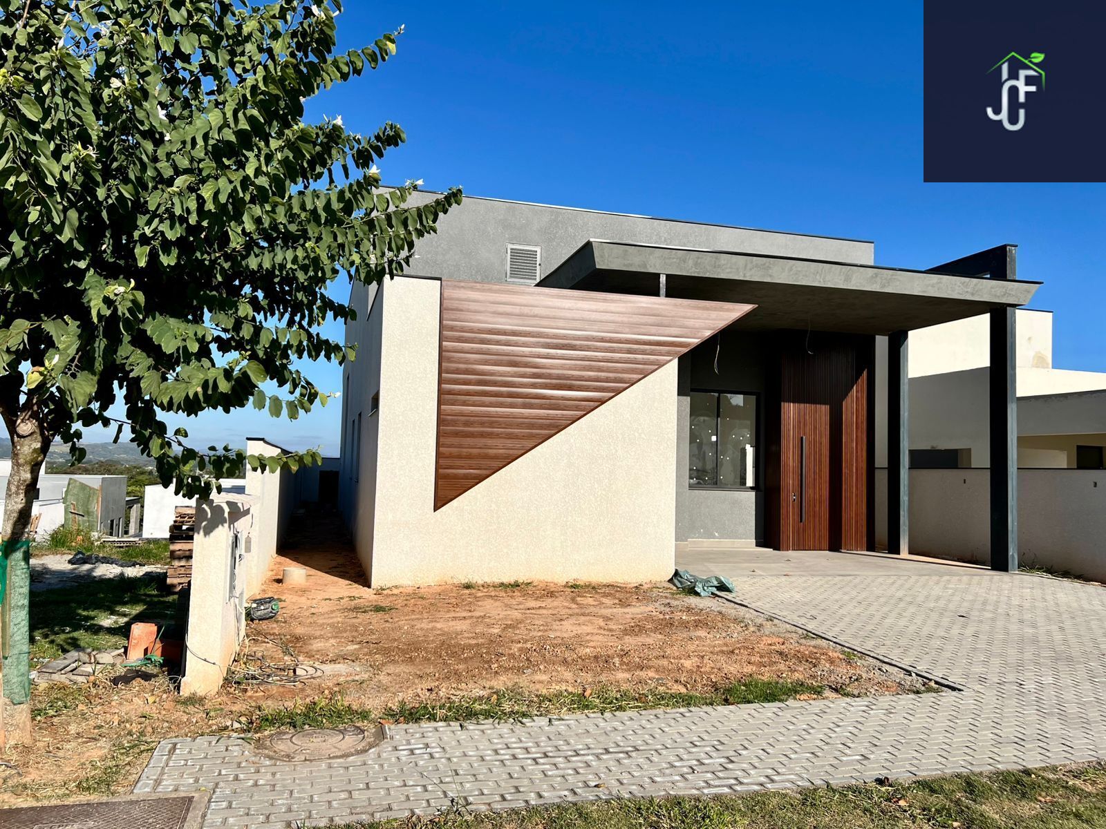 •Fachada com arquitetura moderna e imponente Chegando a 7 metros de altura ao estilo minimalista, detalhes em revestimentos cristais, painel ripado de alumínio amadeirado, janelas em brise oculto e porta pivotante de 4,60m de altura com fechadura eletrônica, vaga para 4 carros sendo 2 cobertos.