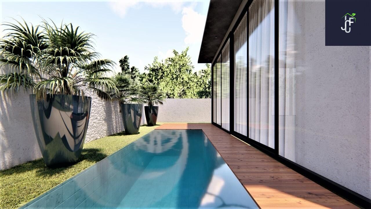 Área social com pé direito de 5 metros, área gourmet com ilha de mármore, churrasqueira e torneira gourmet, e piscina com prainha.