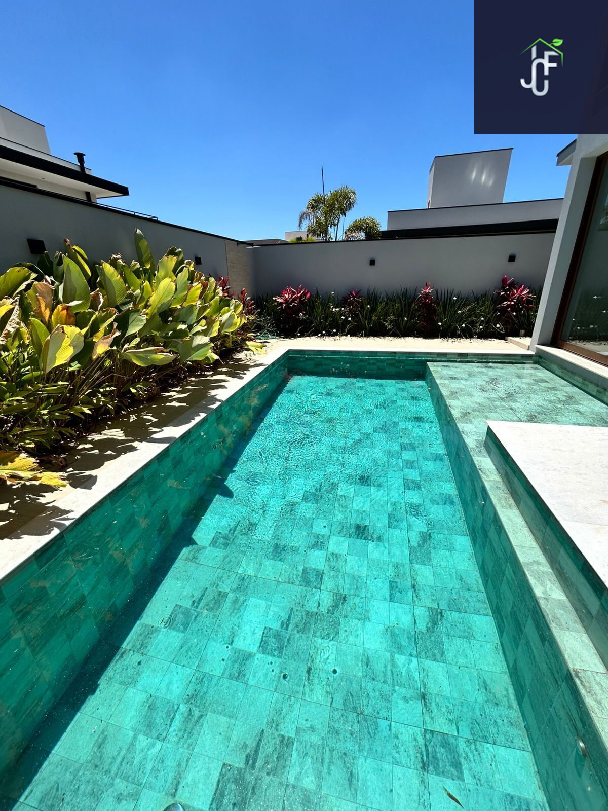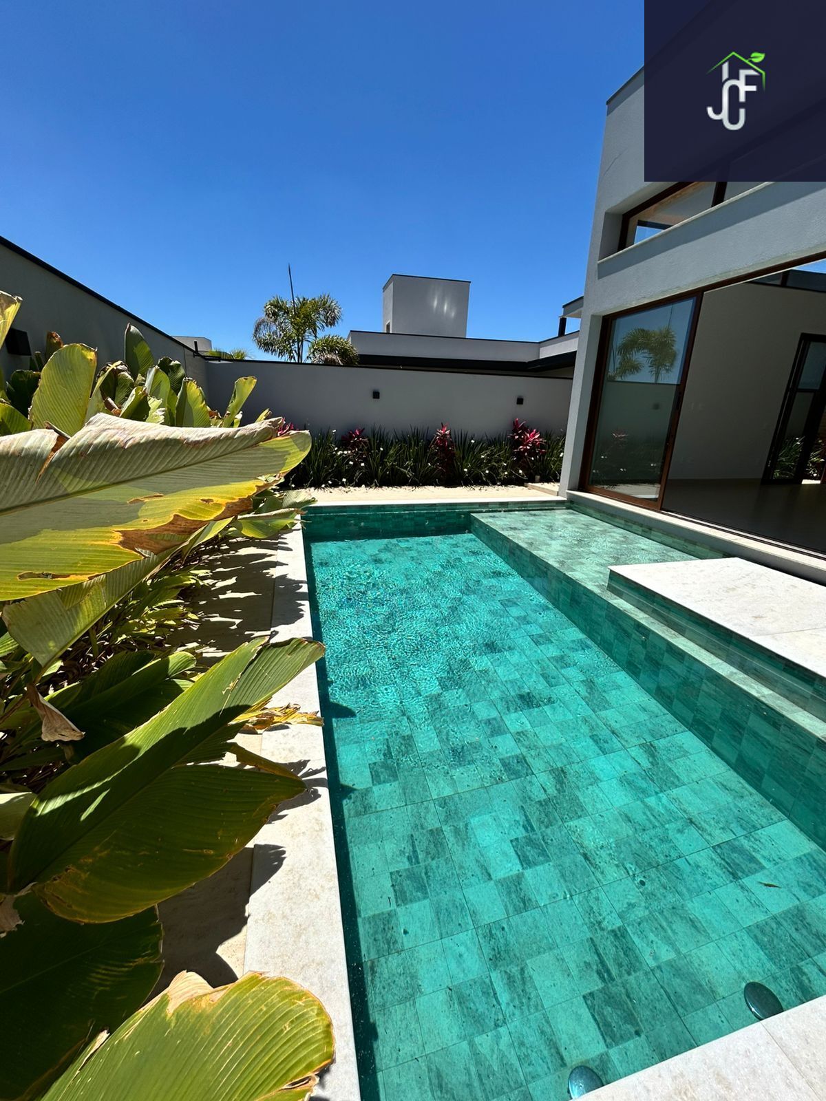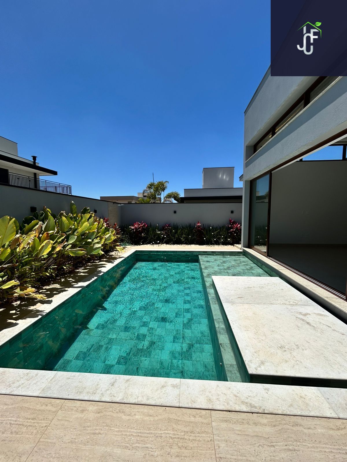 A residência ainda oferece hall de entrada com ripado em alumínio amadeirado, fechadura digital, fino acabamento em porcelanato, portas internas laqueadas e projeto luminotécnico completo. Conta também com infraestrutura pronta para ar-condicionado, aquecimento da piscina, boiler com pressurização e ampla garagem para 4 veículos (2 cobertos).