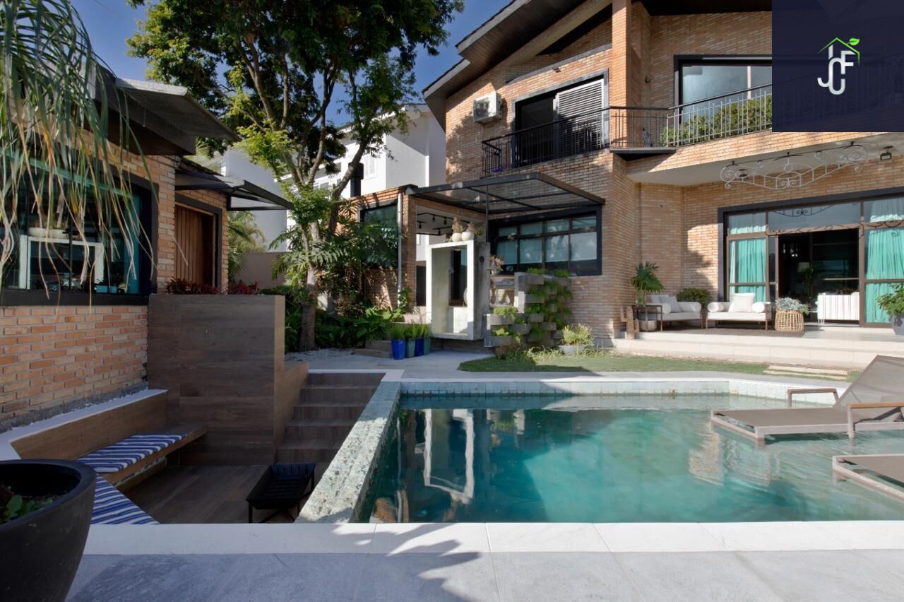 No exterior, a casa se destaca com uma piscina convidativa, um elegante fireplace para noites memoráveis e toda a estrutura necessária para receber bem familiares e amigos. A residência ainda conta com dormitório para funcionário, hobby box, três despensas e área de serviço planejada, oferecendo organização e praticidade ao cotidiano.